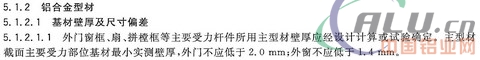 鋁合金門窗標(biāo)準(zhǔn)GB/T8478-2008關(guān)于壁厚的規(guī)定是主型材壁厚不小于1.4mm、2.0mm。見標(biāo)準(zhǔn)5.1.2.1.1: