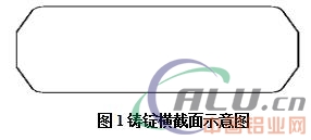 鋁合金卷材生產(chǎn)進(jìn)行試驗(yàn),鑄錠采用梯形鑄錠,鑄錠橫截面見圖1.鑄錠規(guī)格為:600×1320×3450mm,銑面要求3塊鑄錠大面單面銑面量不小11±1mm,3塊鑄錠大面單面銑面量不小于15±1mm,側(cè)面銑面量相同。之后同爐加熱,軋制工藝條件相同,觀察表面起皮情況。